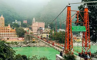 Lakshman Jhula is an iron suspension bridge over the holy river Ganga at Rishikesh